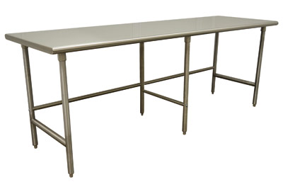 Description: Work Table, 96"W x 24"D, 16 gauge 304 stainless steel top, stainless steel legs with side & rear crossrails, adjustable stainless steel bullet feet, NSF