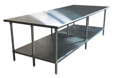 Description: Work Table, 96"W x 48"D, 14 gauge 304 stainless steel top with countertop non drip edge, adjustable stainless steel undershelf, stainless steel legs & adjustable bullet feet, NSF