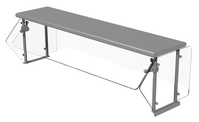Description: Sleek Shield™ Food Shield, self service with adjustable front glass, 62-7/16"W x 19-3/4"D x 18"H (with 15" wide glass top shelf), 3/8" thick heat tempered glass front & 1/4" side panels (side panels 19-3/4" deep to meet NSF requirements), 3/8" thick heat tempered top glass, equipped with Chamber Lock™ technology fixed to upright legs, allowing rotation in 15 degree intervals, maximum load on top glass 100 pounds evenly distributed weight (for Advance Tabco (4) well hot or cold food tables) (NOTE: due to mounting requirements, this food shield extends 15/16” beyond the end of the hot or cold food table on each end. Units set side by side must allow for this additional space)
