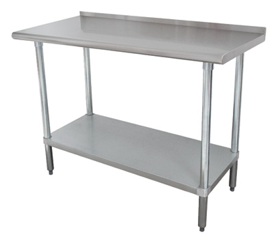 | Full Description: Work Table, 30"W x 30"D, 16 gauge 430 stainless steel top with 5"H backsplash, 18 gauge galvanized adjustable undershelf, galvanized legs with adjustable bullet feet, NSF