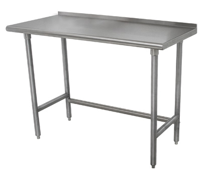 | Full Description: Work Table, 30"W x 30"D, 16 gauge 430 stainless steel top with 1-1/2"H rear up-turn, 18 gauge galvanized adjustable undershelf, galvanized legs with adjustable plastic bullet feet, NSF