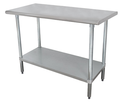| Full Description: Work Table, 30'W x 30"D, 16 gauge 430 stainless steel top, 18 gauge stainless steel adjustable undershelf, stainless steel legs & adjustable bullet feet, NSF