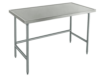 | Full Description: Work Table, 96"W x 48"D, 14 gauge 304 stainless steel top, with countertop non drip edge, adjustable galvanized undershelf, galvanized legs, adjustable plastic bullet feet, NSF
